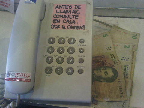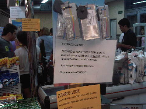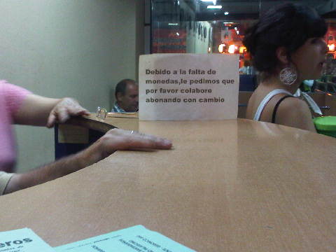 A una hora y media por carretera, en Córdoba, la segunda mayor ciudad del país, los carteles de numerosos comercios hacen patente el problema: "Antes de llamar consulte en caja, por el cambio", se lee en la cabina de un locutorio. En un supermercado céntrico se pide que se pague "sólo con el importe exacto, debido a la falta de cambio por todos conocida". A estas alturas uno ya ha aprendido a no pagar con billetes grandes, y a disculparse cuando no es posible hacerlo de otro modo.