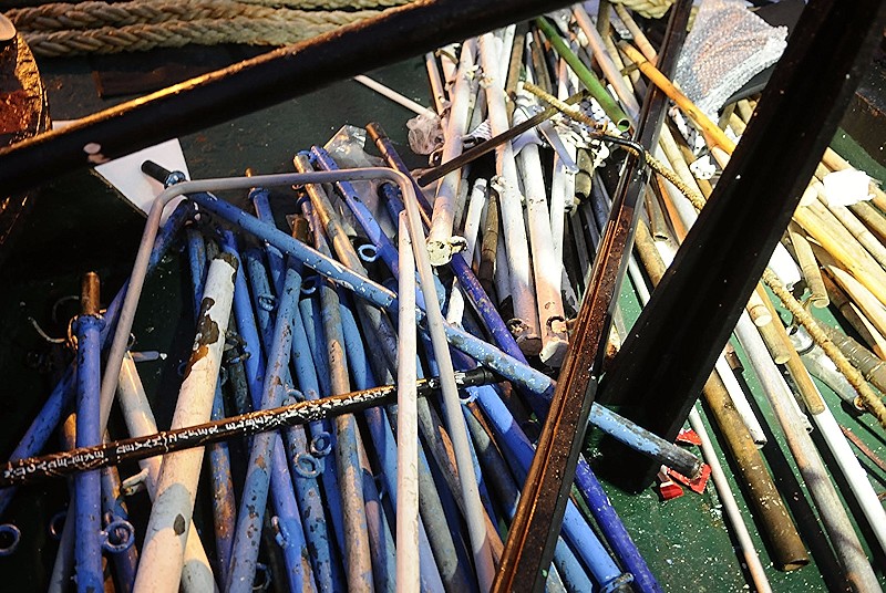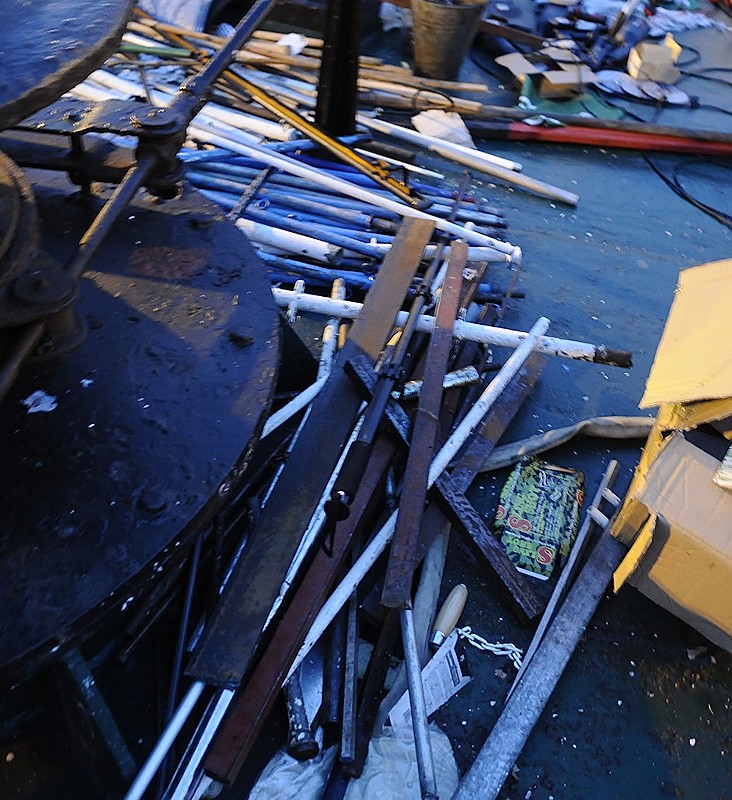 Gruesos palos de madera y otras herramientas contundentes, por si no era suficiente con los cuchillos