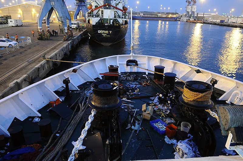 La cubierta del Mavi Marmara, repleta, y no precisamente de palomas blancas