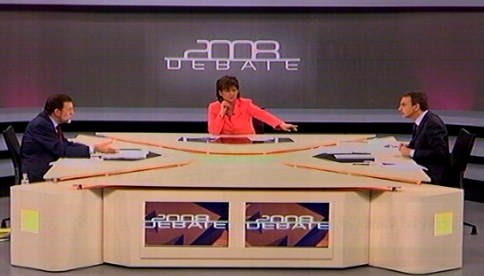 Olga Viza se olvidó de su cometido y permitió a Zapatero interrumpir constantemente a Rajoy. (Imagen de Televisión)