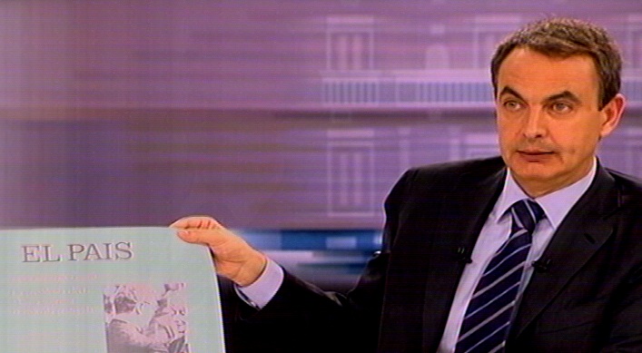 Zapatero enseña una portada del diario El País. (Imagen de Televisión)