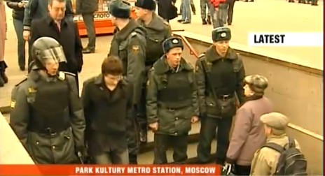La Policía vigila los accesos del metro en la estación Park Kultury.