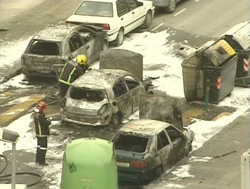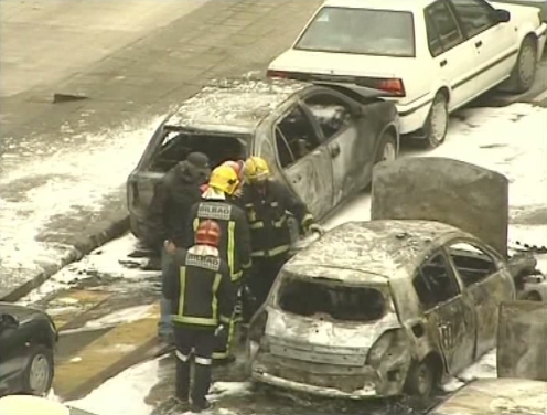 Estado en el que quedaron los coches y la calle después de sofocar las llamas. (LDTV)