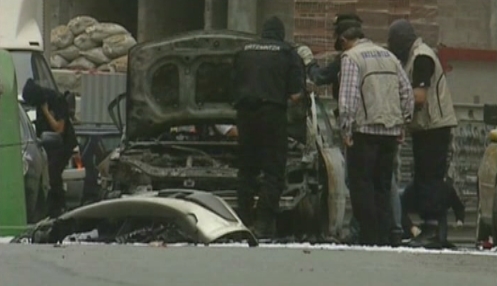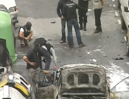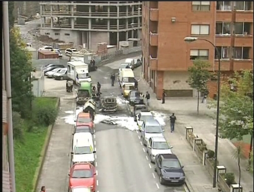 La policía científica y la Ertzaintza busca pruebas entre los restos del atentado. (LDTV)
