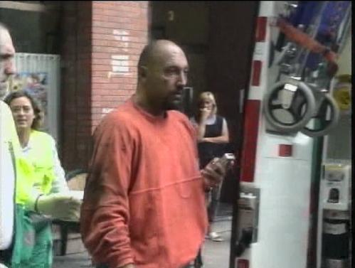 Gabriel Ginés, camina con su teléfono móvil en la mano izquierda hacia la ambulancia tras el atentado. (LDTV)