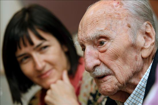 El escritor español Francisco Ayala falleció hoy en Madrid a los 103 años. En la fotografía de archivo, del 2 de julio de 2009, el escritor, junto a la ministra de Cultura, Ángeles González-Sinde, durnate la firma de un convenio de colaboración con la fundación que lleva su nombre para el desarrollo de los contenidos del Centro Documental de Memoria Histórica. EFE/Juan Carlos Hidalgo