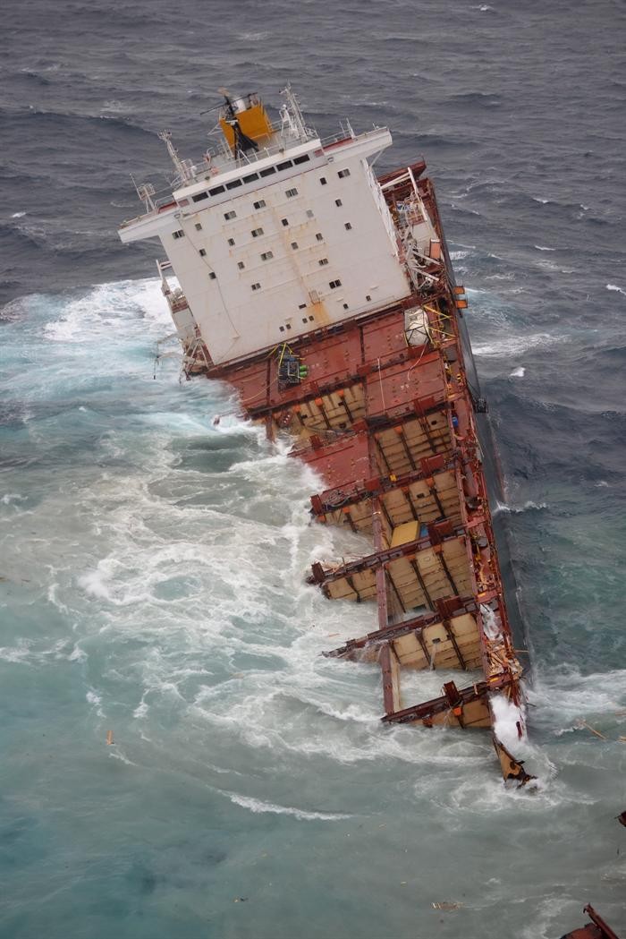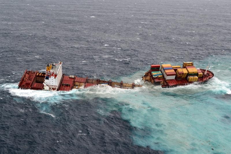 El navío permanece encallado en el arrecife Astrolabe de Tauranga, donde quedó atascado el 5 de octubre de 2011, lo que ocasionó el derrame de petróleo sobre la Bahía Plenty.