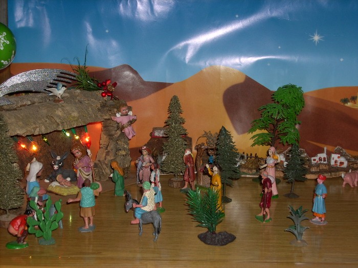 Hola soy C.M., de Sevilla y aqui os enviamos nuestro Misterio que por cierto el establo lo he construido yo. Un saludo y Felioz Navidad para todos.
