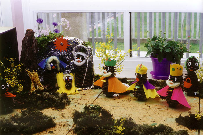 Este Belén hecho con piñas, lo realizamos mis alumnos y yo cuando estas actividades eran aún motivo de ilusíon en nuestra sociedad. Desde Santiago de Compostela, ¡Feliz Navidad! E.R.