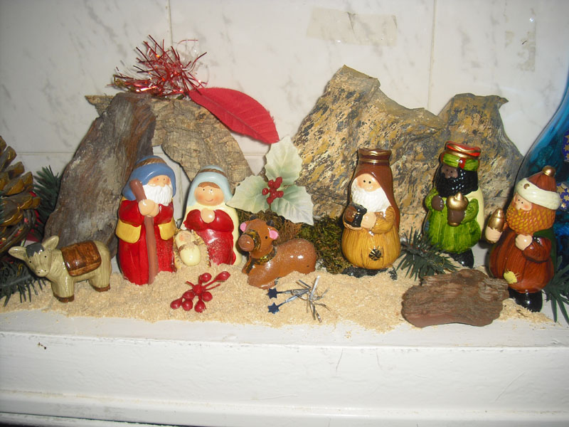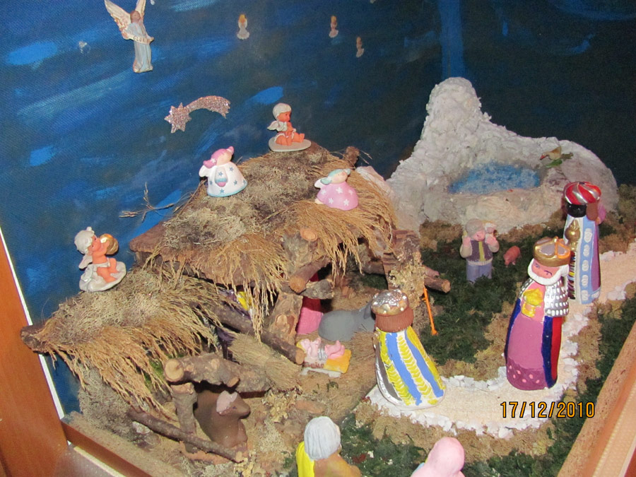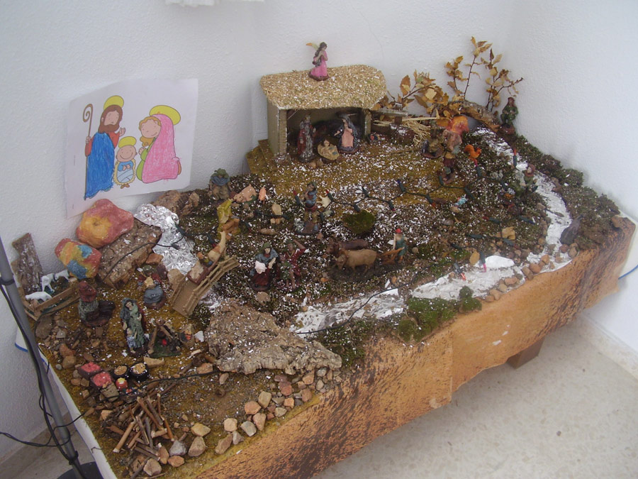 Como cada año mis hijos Santiago y Pilar me ayudan a coger cosas del campo y montamos el belén, este año ha sido un poco más tarde porque estuvimos todos enfermos en el puente de la purísima. Un saludo.