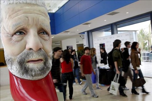 Un gran busto de Berlanga recibe a los asitentes al congreso-homenaje sobre la obra y la figura del cineasta en el centro de estudios Ciudad de la Luz de Alicante.