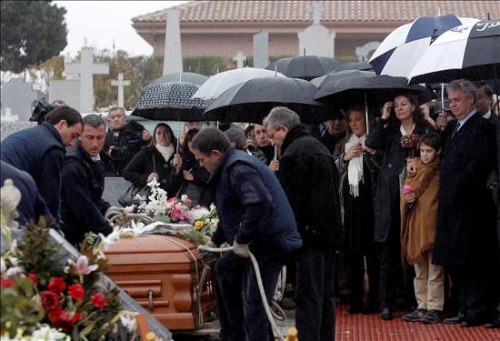 Decenas de familiares, amigos y personalidades asisten al entierro del cineasta Luis García Berlanga que ha tenido lugar en el cementerio de la localidad madrileña de Pozuelo de Alarcón.