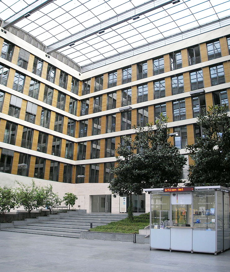 El ministerio de Asuntos exteriores, de nueva construcción luce una bóveda que da luz natural a su atrio central. El cristal ha sido uno de los elementos principales del nuevo Berlín.