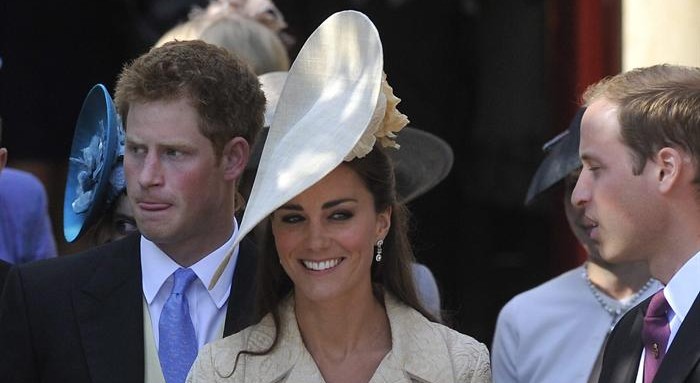 La más elegante fue la princesa Catalina, que eclipsó a la novia con un abrigo de color blanco roto. Junto a ella, su marido, el príncipe Guillermo, y su cuñado, el príncipe Enrique.