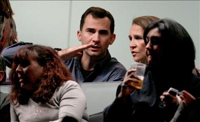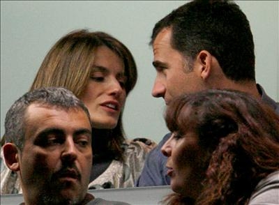 El Príncipe Felipe conversa con su mujer, la Princesa Letizia, durante el concierto ofrecido esta por el músico estadounidense Bruce Springsteen, junto a la E Street Band, en el Palacio de Deportes de Madrid. (EFE)