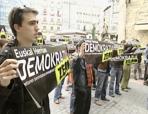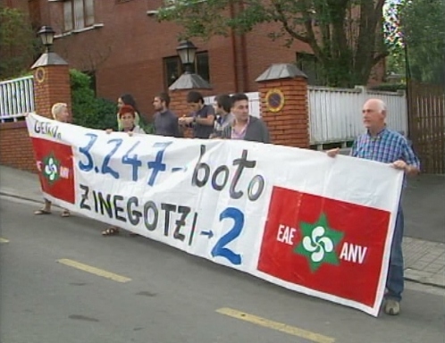 Miembros de ANV reivindicando los votos nulos en los municipios en los que sus listas fueron ilegalizadas. (LDTV)