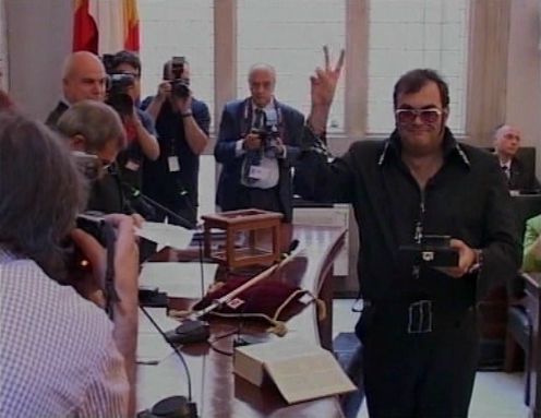 El "Elvis" catalán de Reus promete asistir vestido como el conocido cantante de Memphis a todos los plenos. El concejal llevaba en su programa propuestas como que la Guardia Urbana llevara GPS para su mejor localización por parte de los ciudadanos que se encuentren sin fuego a la hora de hacer "un canuto". (LDTV)