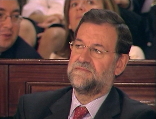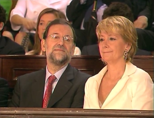 El líder del PP, Mariano Rajoy, y la presidenta de la Comunidad de Madrid, Esperanza Aguirre, presentes en la toma de posesión del alcalde reelegido de Madrid, Alberto Ruiz Gallardón. (LDTV)