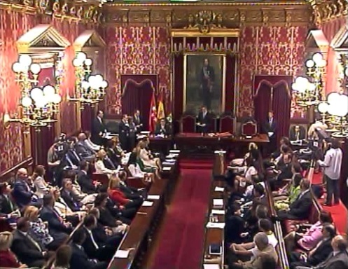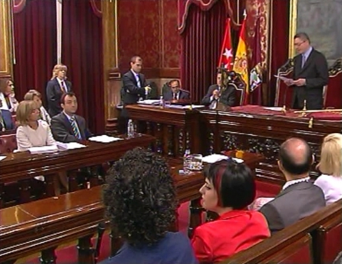 Plano general del salón de Plenos durante la proclamación del discurso de investidura del alcalde electo de Madrid. (LDTV)