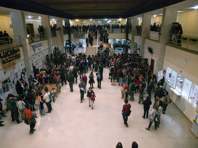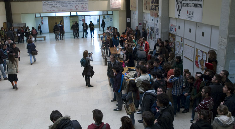 El hall de la facultad de Geografía e Historia se les ha quedado un poco grande. Los fotógrafos de prensa y los camarógrafos han podido trabajar cómodamente.