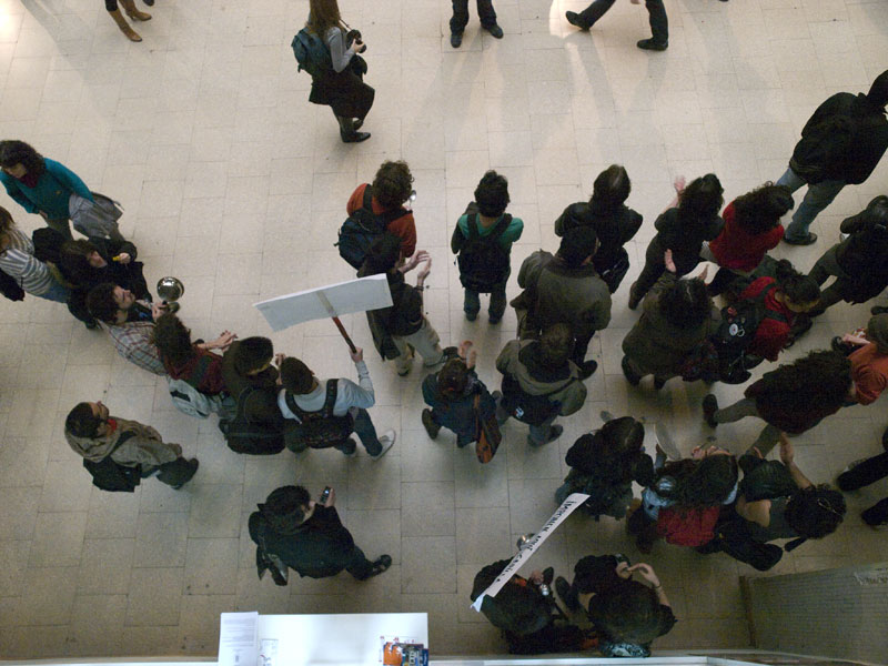 ... y mucho espacio libre. En vertical desde el piso de arriba este era el aspecto de la concentración.