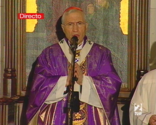El presidente de la Conferencia Episcopal y Cardenal-Arzobispo de Madrid, Antonio María Rouco Varela, fue el encargado de oficiar la ceremonia. (Imagen TV)