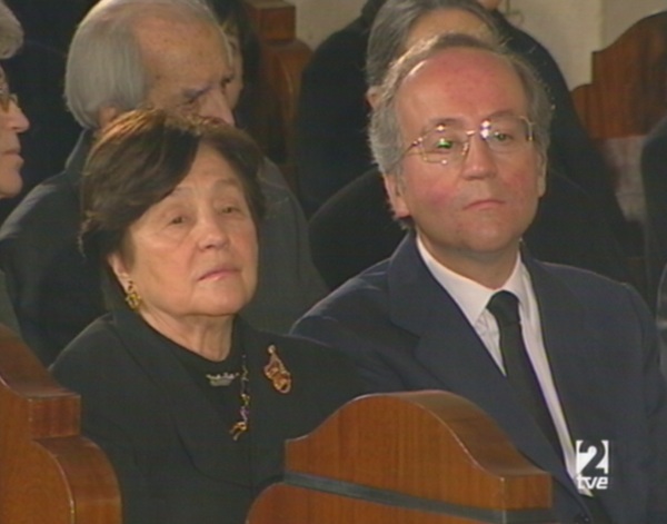 La viuda del ex presidente Leopoldo Calvo Sotelo, Pilar Ibáñez-Martín, junto a uno de sus hijos. (Imagen TV)