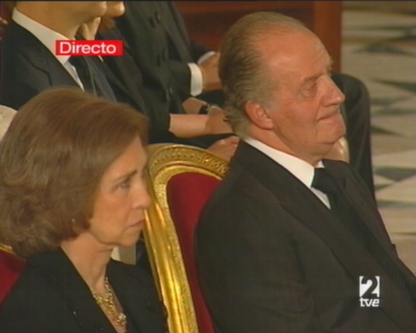 Sus Majestades los Reyes, Don Juan Carlos y Doña Sofía, presidieron el funeral. (Imagen TV)