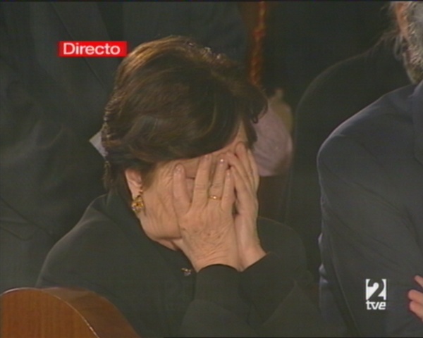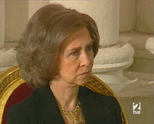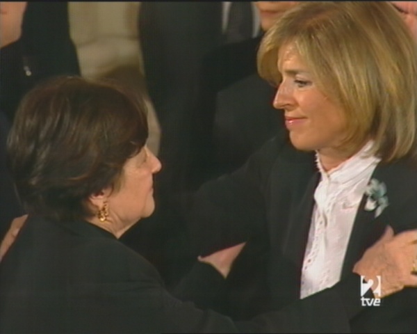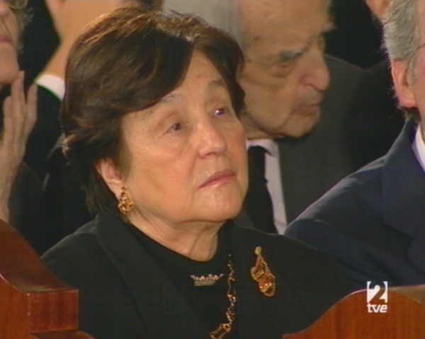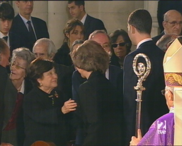 Su Majestad la Reina, Don Sofía, da el pésame a la viuda de Calvo Sotelo,Pilar Ibáñez-Martín. (Imagen TV)