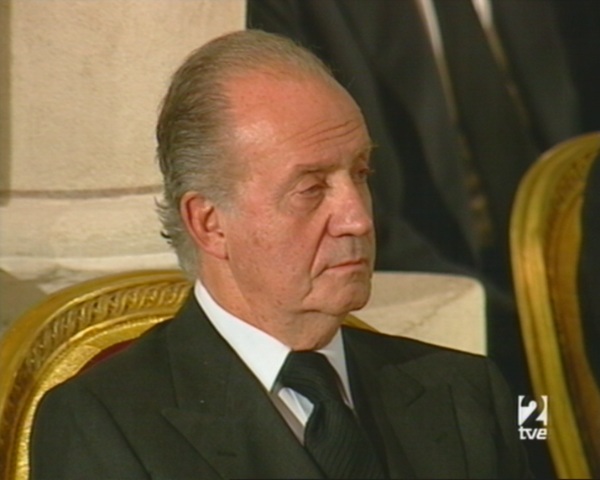 Su Majestad el Rey, Don Juan Carlos. De espaldas, el presidente del Senado, Javier Rojo.(Imagen TV)