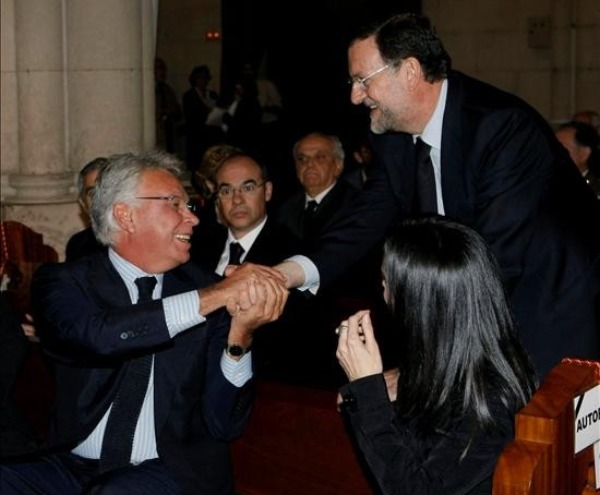 El líder del PP, Mariano Rajoy, saluda al ex presidente del Gobierno Felipe González. (EFE)