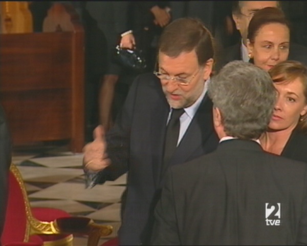 El presidente del PP y líder de la oposición, Mariano Rajoy, junto a su esposa, Elvira Fernández Balboa. (Imagen TV)