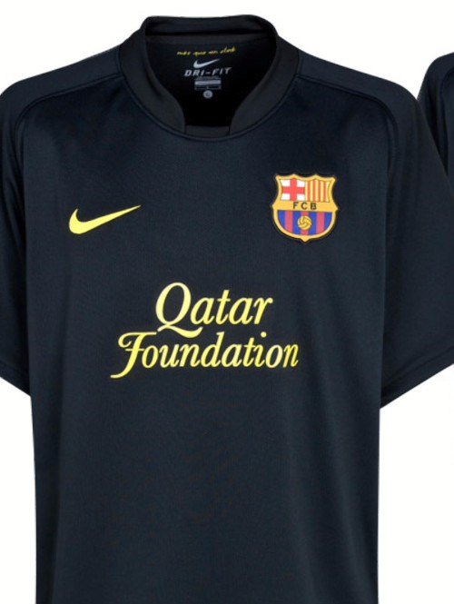 Con el nuevo patrocinador de Qatar Foundation, el Barcelona estrena con Nike la novedosa camiseta negra, que resalta con el amarillo chillón del patrocinador.