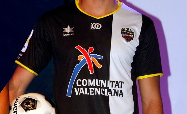 También de negro vestirá el Levante, que, al igual del Barça, viste de azulgrana en su primera equipación. El blanco también está presente en su camiseta.