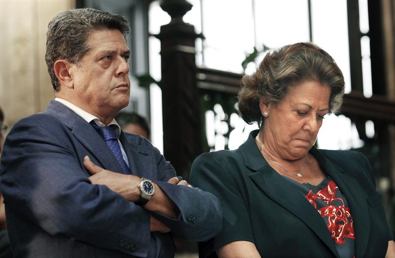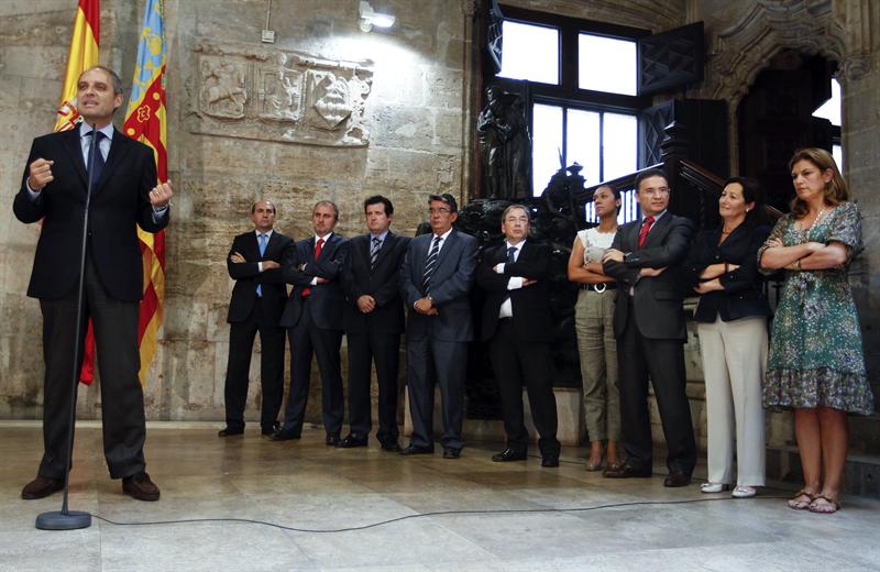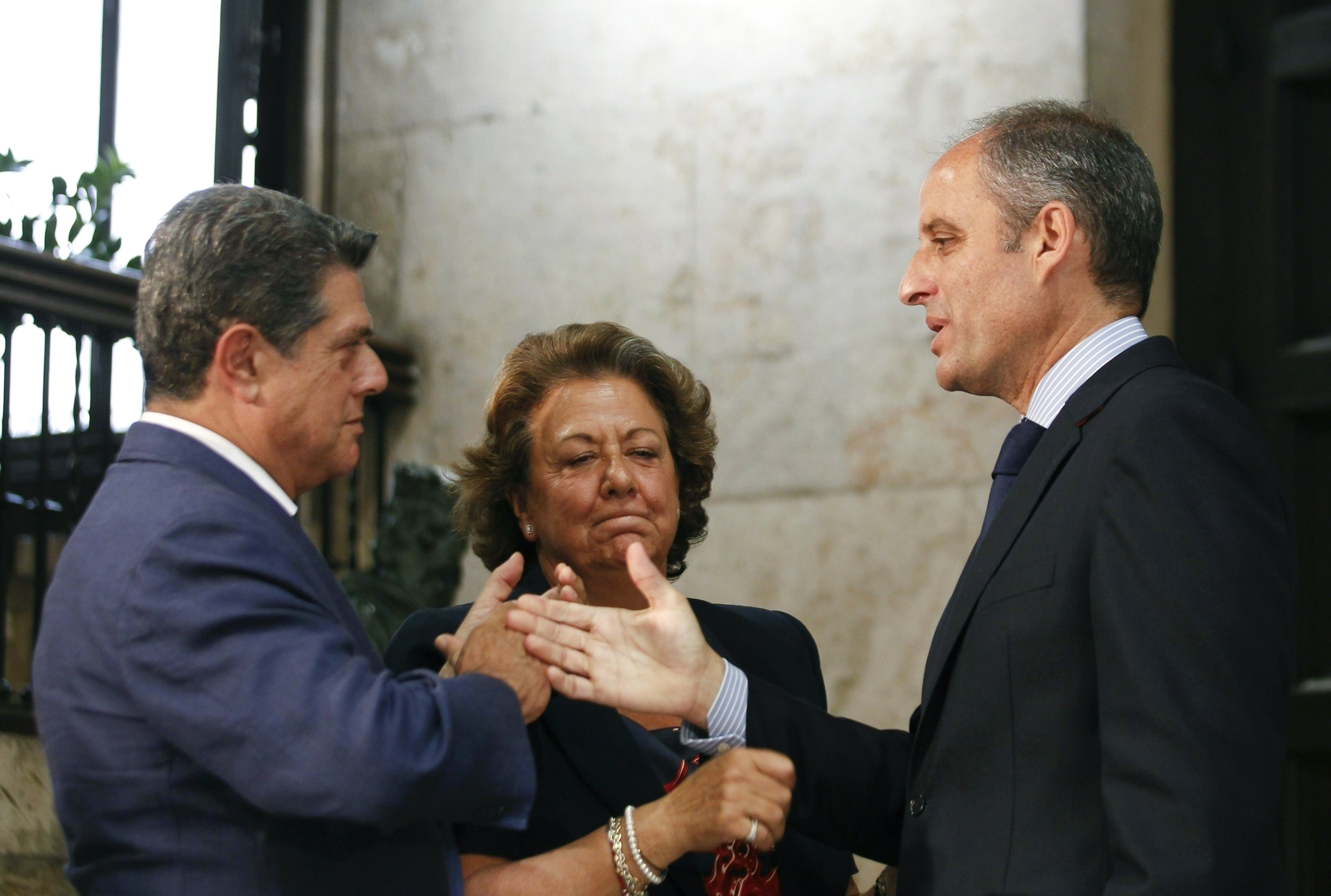 Federico Trillo ha sido la persona que desde Génova se ha trasladado hasta Valencia para hablar con Camps y gestionar este asunto en persona. En la imagen junto a Rita Barberá durante el discurso en el que el presidente de la Generalidad ha anunciado su dimisión. Sus caras, un poema