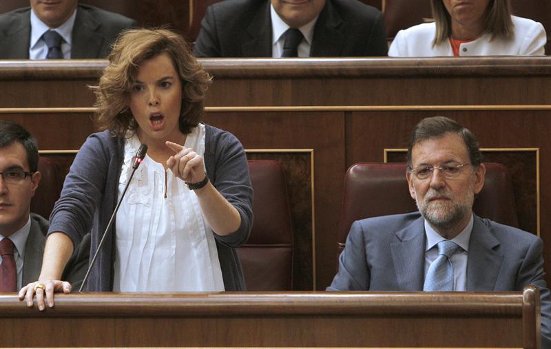 Mariano Rajoy, con la mirada perdida, durante la intervención de Soraya en la sesión de control al Gobierno de este miércoles por la mañana