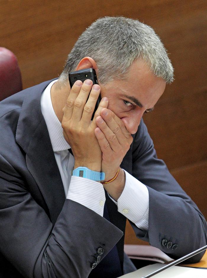 Ricardo Costa era el más reacio a declararse culpable. En la imagen, hablando por teléfono esta mañana desde las Cortes Valencianas