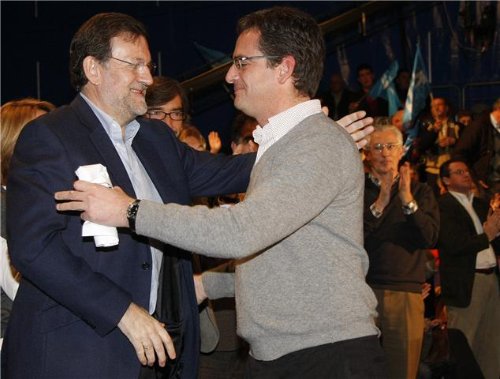 Mariano Rajoy saluda a Antonio Basagoiti en el acto celebrado en Vitoria. Foto: PP