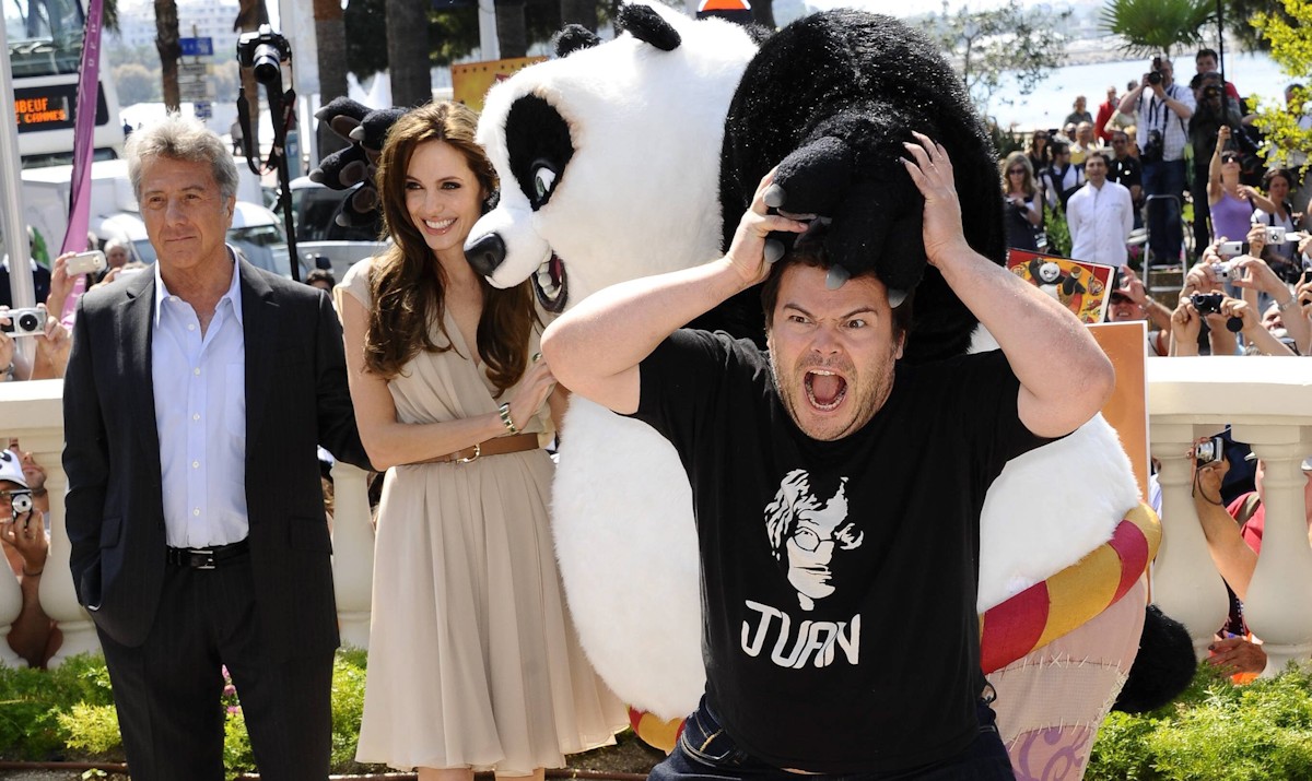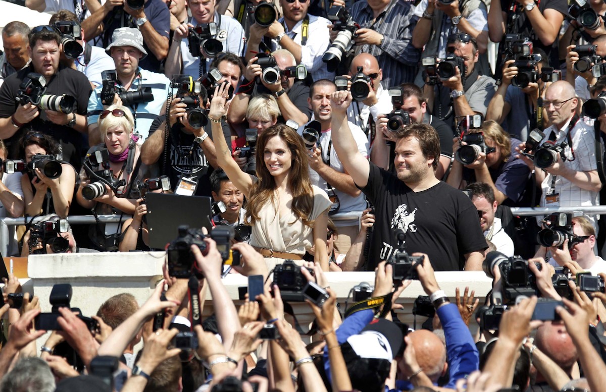 Angelina Jolie y Jack Black en un océano de cámaras fotográficas.