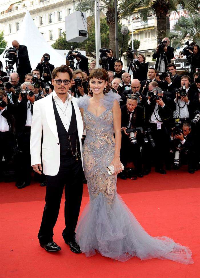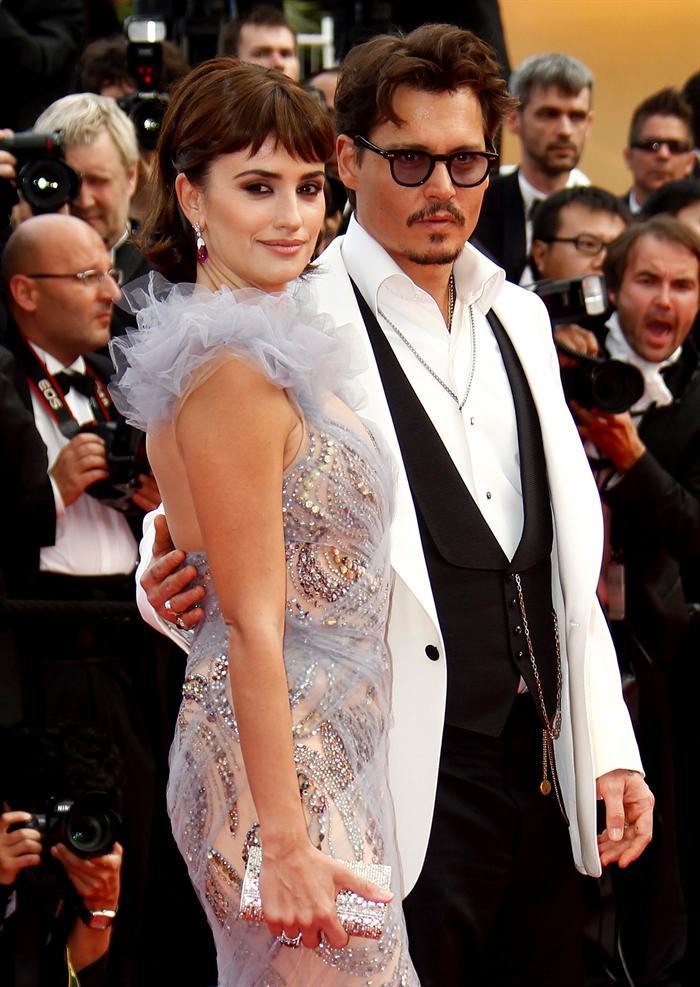 La actriz española Penélope Cruz y el actor estadounidense Johnny Depp llegan a la proyección de la cuarta entrega de "Piratas del Caribe" en la 64ª edición del Festival de Cannes. Efe/Christophe Karaba
