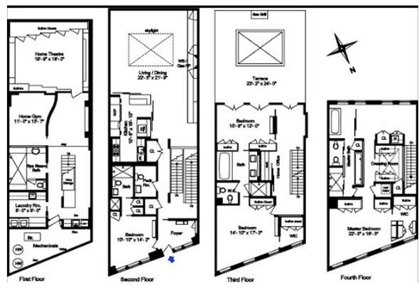 En esta imagen encontramos los planos de las tres plantas con las que cuenta el Loft de lujo de Strauss Kahn en Manhattan. El ex director gerente del FMI pagaba unos 35.000 euros mensuales por la casa. Ahora, se vende por 10 millones de euros. Se encuentra ubicada en uno de los barrios más exclusivos de manhattan, en la zona norte de la ciudad de Nueva York