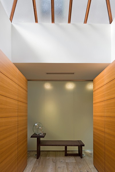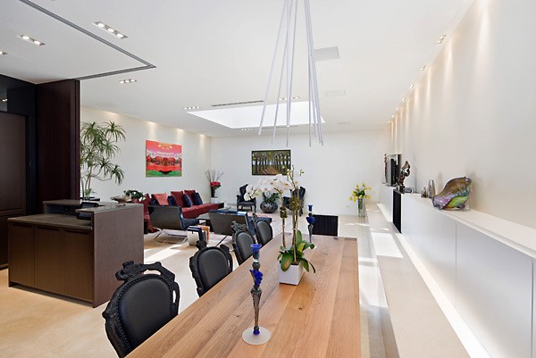 En esta imagen podemos observar uno de los salones de la casa, iluminado por luz natural gracias a una moderna claraboya