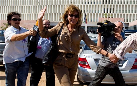 Montserrat Corulla, a quien Miguel Sebastián relacionó públicamente con Gallardón y acusada de ser uno de los principales testaferros de Juan Antonio Roca, llega con su abogado Gonzalo Rodríguez-Mourullo Otero, a la Audiencia Provincial de Málaga.
