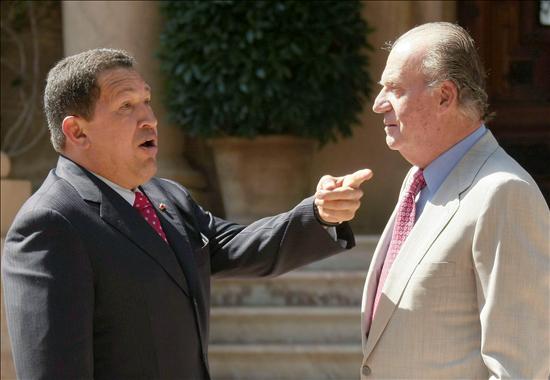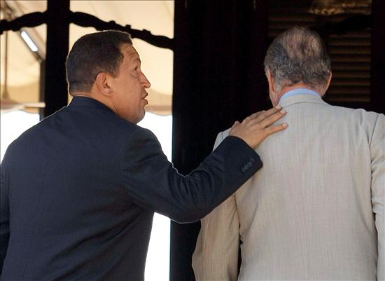 Hugo Chávez se reencuentra con el Rey, Don Juan Carlos, después del famoso episodio del "¡Por qué no te callas!" en la cumbre de Chile.