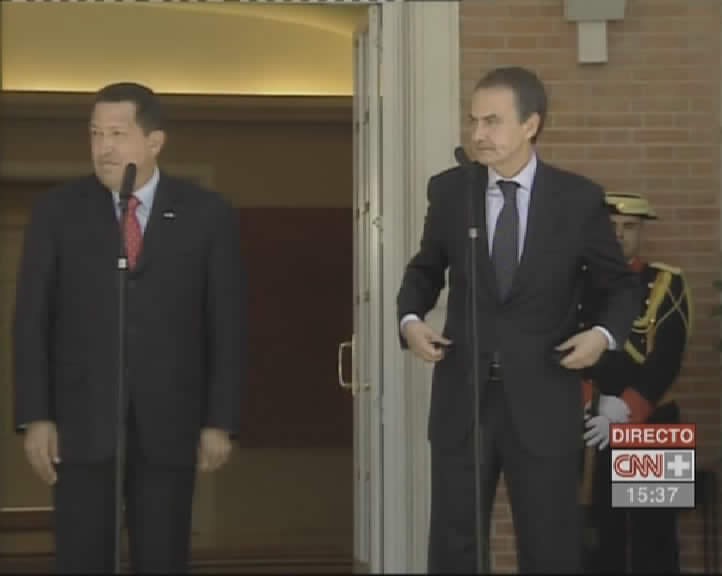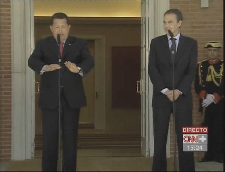 El presidente venezolano comparece junto a Rodríguez Zapatero ante los medios, en su llegada a La Moncloa.