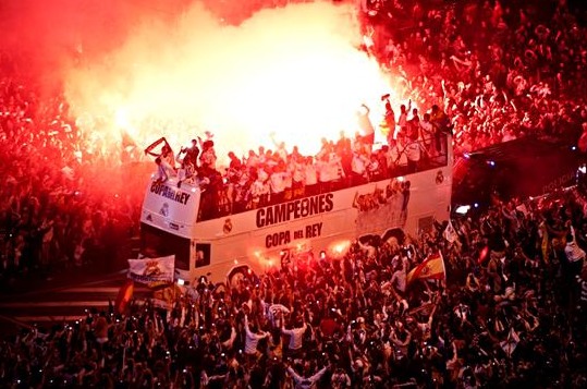 El Real Madrid se ha dado un baño de multitudes ante su afición en la Plaza de Cibeles para celebrar la conquista de la Copa del Rey.