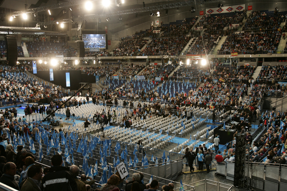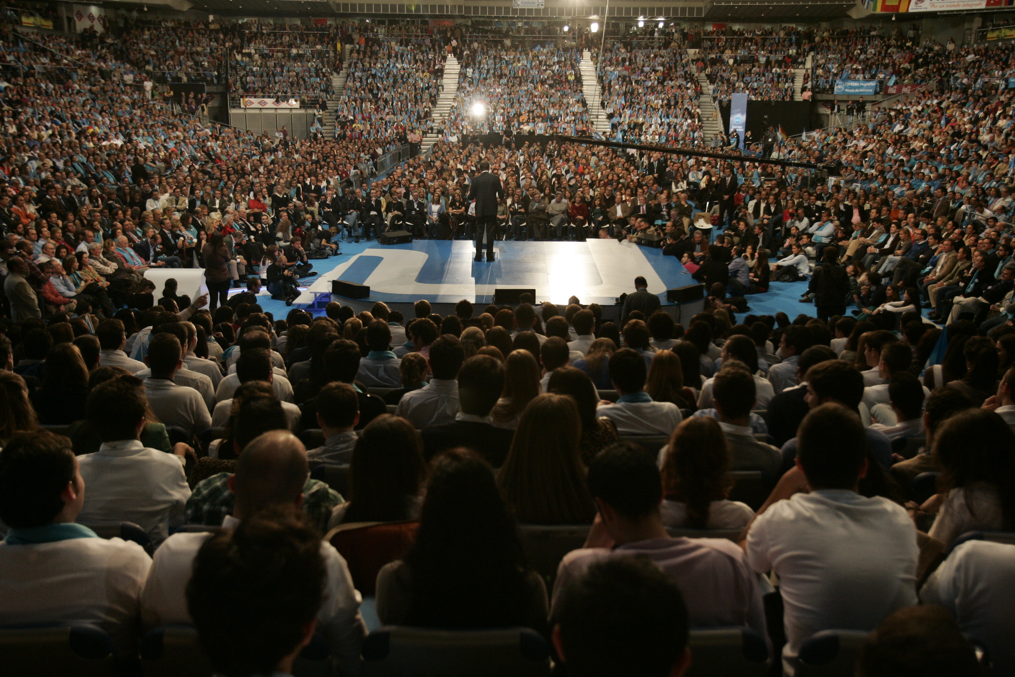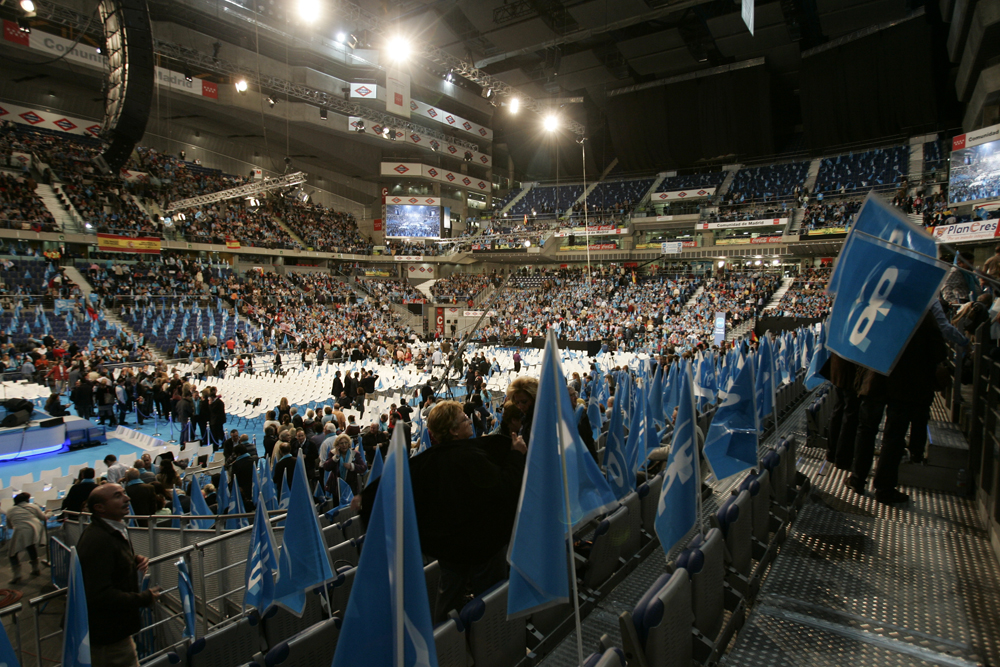Las gradas del Palacio de los Deportes de Madrid, repletas de militantes y simpatizantes del PP.