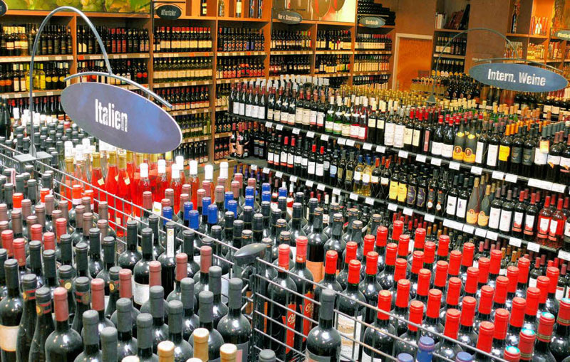 El escenario deflacionista en la eurozona ha beneficiado sobremanera a los consumidores alemanes, que ahora pueden adquirir más bienes y servicios por el mismo dinero. La inflación en 2010 ha promediado el 1,3% mientras que los salarios reales han aumentado un 2,3% después de deducirles el incremento en los precios. El resultado es que los alemanes son cada vez más ricos y pueden permitirse el lujo de gastar más. En la imagen la sección de vinos, la preferida para muchos alemanes, del hipermercado Edeka de Laufenburgo, una ciudad a caballo entre Alemania y Suiza.