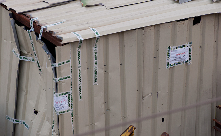 El cobertizo en el que se guardan restos de un foco de explosión del atentado del 11-M ha sido precintado por la fiscalía.
