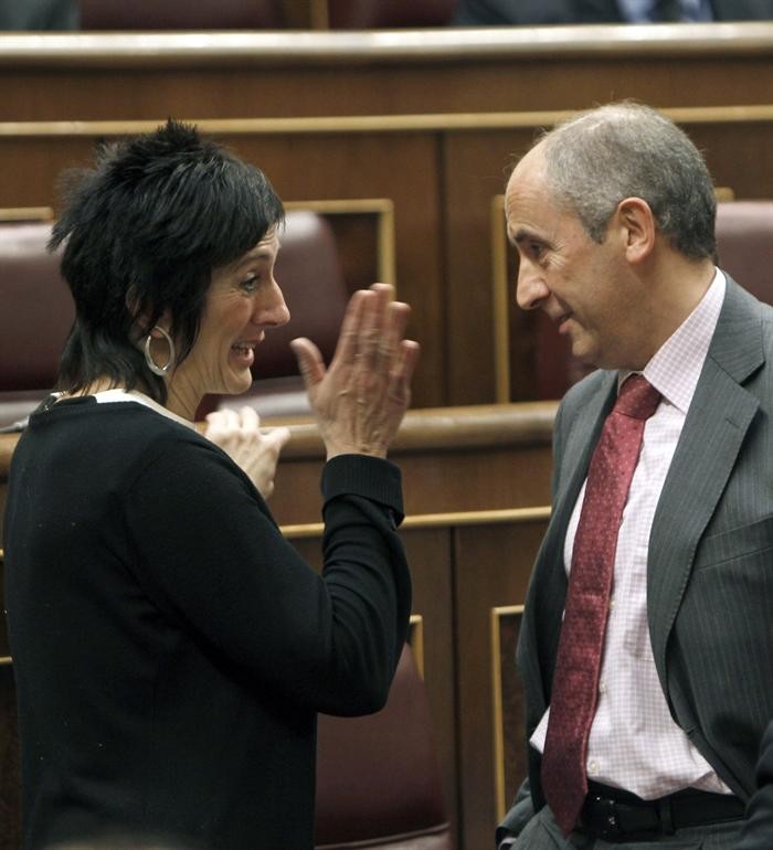 La diputada de Amaiur Maite Ariztegui conversa animadamente con Josu Erkoreka del PNV.